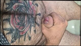 Shedbuilder soft to hard with oil and cumshot watching porn: nice wank and cumshot (1st attempt at editing!)