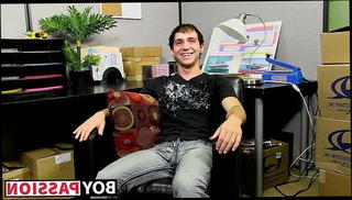 Amateur homo Kevin Grover shows off assets before wank off: this cute young man is Kevin Grover and he has come to talk to us before pulling his pants of and masturbating vigorously!