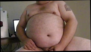Older stud pulls his big throbbing cock out to jerk it off: chubby amateur strips naked to tease with his huge dick before lubing it up and stroking shaft.