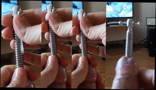 Hollow screw penis plug cumshot through (copycat after the couple on TV)