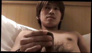 Gay anal cockriding with two Asians: horny gay Asian with nice hard dick bottoms from the top, riding his boyfriend's cock before getting anally fucked from behind with creampie.