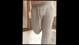 Very dirty play with wet cock in urine and cum: i pee myself and then I start masturbating cock and balls are all wet until I cum very dirty fun but I like to have cock wet