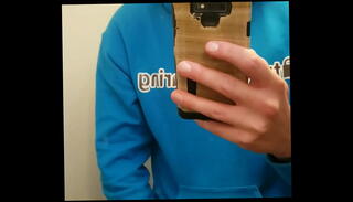 University student jerking off in blue jeans after class (no cum)