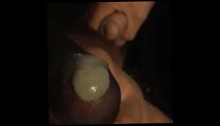 More spunk over my black nylons: my friend wanking me off again shooting over my nylons