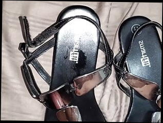 Was at a friend place and saw her daughters heels at the entry way.: took her heels and played with them and cum in them