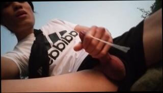 Pissing, jerking, cumming, this boy has an orgasmic evening outdoors on a rocky beach