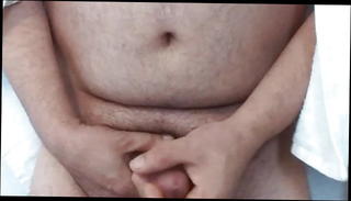 Home alone masturbating: bear stocky guy masturbating his thick cock