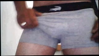 Chubby daddy jerks in black tangas: wearing my black tangas I jerked my big fat married chub cock until I shot my load which I smeared over them