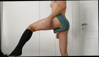 Gay chubby cross dresser putting a bunny plug in and jacking off