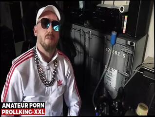 Penis pump and 8 rings: here he jerks off himself. He pulls 8 cock rings around his sack and then also a penis pump