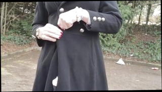 Redhead shemale in black lingerie jerks off outdoors: redhead shemale in black lingerie enjoys jerking off outdoors