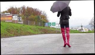 Fetishtrans in boots and leather november 2019 update: getting a public flashing kick, afterwards solo cumshot at home