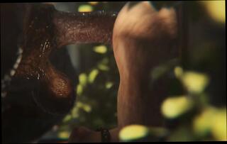An anthropomorphic panther eats a beautiful man's ass in the forest NO MOANS