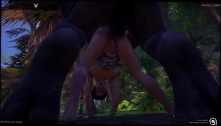 Futa fucks a girl in mouth and pussy on the seashore part 2