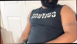 Muscle Guy Upset with His Little Cock: muscular dude oils himself up on leather couch and blows a massive load all over his chest and stomach