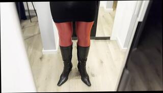 I squirt a big load of while wearing a black skirt, red nylon tights and high black leather boots: my stock of women's underwear is growing steadily. In this video, I put on a black tight skirt for the first time. I wear high black leather boots to...