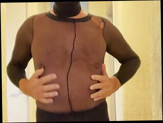 Christmas Day dress up fun: cut down bodystocking and crutchless tights