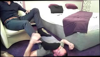 Threesome 2 Master 1 Slave domination foot worship sneakers smelly socks stinky feet BDSM playroom