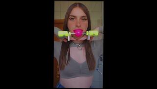 bondage ball gag | bdsm ball gag | bondage amateur bdsm | solo gagging | bondage bdsm female | ball gagged drooling | ball mouth gag
