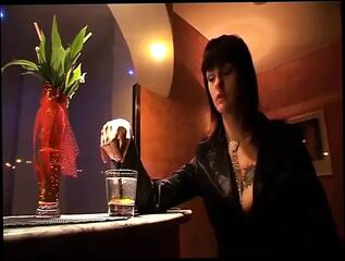hot black lap dancer in fishnet stockings and boots, ass fucked by two customers of the night club