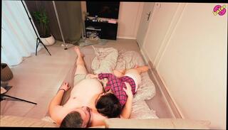 Hot Young MILF Humping Leg Until Orgasm While Sucking Cock and Swallowing Load to Get Credit Card
