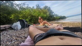 Topless Beach hottie Removes Panties & I Show her My Cock